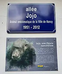 Le 10 décembre 2022 a été inaugurée une allée "Jojo Animal emblématique de la Ville de Nancy" en mémoire de Jojo le chimpanzé. Elle traverse l'Espace animalier où Jojo a vécu l'essentiel de sa vie.