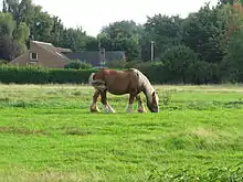 On trouve dans les pâturages au bord du lac du Héron des chevaux de trait.