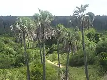 Les palmiers yatay se distribuaient originellement non seulement dans cette région, mais aussi dans des secteurs des provinces de Santa Fe et de Corrientes. La population de ce palmier a considérablement diminué du fait de l'installation excessive de cultures et de pâturages.