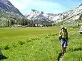 Les talus abritent de petits mammifères comme les pikas et les marmottes à ventre jaune. Les oiseaux tels que les pinsons à couronne grise et les pipits d'Amérique et les espèces d'amphibiens sensibles comme les grenouilles à pattes jaunes des montagnes et les crapauds Yosemite se nourrissent d'insectes près des lacs alpins et des zones humides[23]. Des animaux plus gros comme les ours peuvent s'aventurer dans la zone alpine à la recherche de nourriture (un comportement désormais exacerbé par une mauvaise élimination des déchets par les campeurs), mais n'y hivernent pas[24].