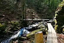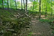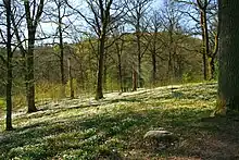 Dans les sols plus riches, comme au fond des vallées ou sur les pentes, la flore est, elle aussi, beaucoup plus riche[S 10]. Ainsi, des espèces comme le merisier à grappes (Prunus padus), le fusain d'Europe (Euonymus europaeus), le noisetier commun (Corylus avellana), le lamier jaune (Lamium galeobdolon) et quelques espèces de fougères parviennent à se développer[S 10]. Sur les versants nord et est se trouvent plusieurs espèces de mousses, dont quelques espèces rares telles que Porella arboris-vitae ou Neckera pumila, ainsi que quelques espèces de lichens, eux aussi rares, tels que la pulmonaire (Lobaria pulmonaria)[S 10]. Les sols les plus riches sont souvent ceux contenant des filons de diabase, on y trouve alors des anémones hépatiques (Hepatica nobilis), des gagées jaunes (Gagea lutea), des anémones fausse renoncule (Anemone ranunculoides), des mercuriales vivaces (Mercurialis perennis) et des gaillets odorants (Galium odoratum)[S 10].