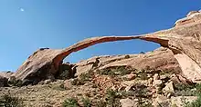 • Landscape Arch : Elle se trouve à Devil's Garden (le jardin du diable), la plus grande concentration d'arches du parc. Avec ses 89 mètres de long (en fait plus de 100 m d'une base à l'autre), à 32 mètres au-dessus du sol, Landscape Arch est une des plus grandes arches naturelles du monde.