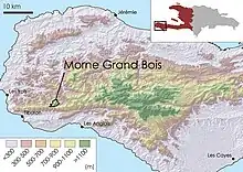 Le Morne Grand Bois (1262 m) est une montagne isolée en forme de cuvette, dans le sud-ouest d'Haïti. Elle est couverte d'une forêt tropicale primaire, rare en Haïti[4].