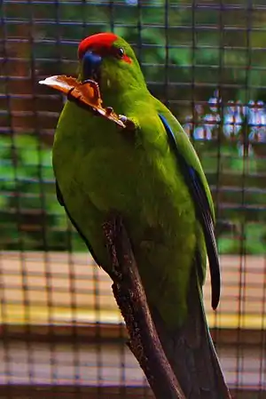 - Endémiques : notamment le cagou, l'emblème du territoire et animal protégé, qui fait l'objet d'un élevage afin de repeupler les zones naturelles ainsi que d'un programme d'étude en partenariat avec notamment le Yokohama zoological gardens au Japon, le Zoo de San Diego aux États-Unis ou encore le parc ornithologique de Walsrode en Allemagne. Parmi les autres espèces d'oiseaux endémiques peuvent également être notées : notou, perruche cornue (de la chaîne ou d'Ouvéa), le corbeau calédonien entre autres.