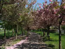 En 1990, dans le cadre de la Sakura-Campaign, des cerisiers du Japon sont plantés dans plusieurs lieux de la ville de Berlin en signe de célébration de l'unification allemande. Une chaîne de télévision japonaise a organisé une campagne de financement pour ce projet. Sur le parcours du mur se trouvent plusieurs plantations de cerisiers du Japon, notamment aux abords de la Bornholmer Straße, du Lohmühlenbrücke à Treptow et du „Japan-Eck“ situé entre Teltow et Berlin-Lichterfelde[13].