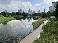 Aujourd'hui, Chicago est la deuxième ville après New York à posséder le plus de parcs et d'espaces verts aux États-Unis, totalisant 570 parcs municipaux[12],[13] soit plus de 30 km2 de verdure, mais aussi 33 plages, 16 lagunes historiques, 9 ports de plaisance en bordure du lac Michigan[14], 86 piscines, 90 aires de jeux, 230 gymnases, 66 centres de fitness, 9 patinoires, 11 musées, un parc zoologique et 2 jardins botaniques[15], ce qui fait du Chicago Park District le plus grand système urbain de gestion et d'entretien d'espaces verts de la nation.