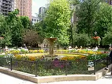 Outre ses parcs et ses plages, la ville de Chicago recèle de nombreux jardins publics ainsi que des jardins botaniques et des arboretums[45]. Le South Garden at the Art Institute of Chicago figure parmi les plus beaux jardins de Chicago et fut construit sur un ancien parking et se trouve aujourd'hui à proximité de l'Art Institute of Chicago. Construit par l'architecte Dan Kiley, ce jardin pittoresque comporte une grande place mettant en valeur un bassin rectangulaire connu sous le nom de fontaine des Grands Lacs (Fountain of Great Lakes), sculpté par Lorado Taft. Autour du bassin de la fontaine, des parterres surélevés sont plantés d'aubépines.