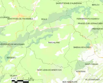 La commune, d'une superficie de 4 118 ha, compte dix hameaux Pardailhan (le chef-lieu), Rodomouls, Coulouma, Rieussec, Pez, Catalo, Copujol, La Garrigue, La Louvière et Pardailho.