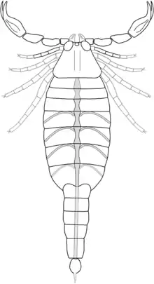 Il se singularise parmi les scorpions primitifs par ses 7 sternites, alors que les autres genres de scorpions fossiles montrent une évolution durant l'intervalle Silurien - Carbonifère inférieur, vers 6 segments pour Eramoscorpius et Proscorpius du Silurien, puis seulement 5 segments pour Waeringoscorpio et Pulmonoscorpius du Dévonien et du début du Carbonifère[1].