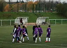 Louis Lebel, membre fondateur du PUC, crée le premier blason du club : un écusson violet paré de bandes blanches.
