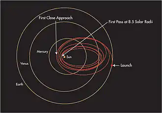 Six semaines après son lancement, Parker Solar Probe survole Vénus et utilise l'assistance gravitationnelle de la planète pour réduire le périhélie de son orbite. Il effectue une première incursion dans les régions proches du Soleil en passant vers la fin de l'année 2018 à 0,163 Unité Astronomique (36 rayons solaires) de sa surface. Au cours des années suivantes, l'observatoire solaire utilise à 7 reprises l'assistance gravitationnelle de Vénus pour modifier son orbite héliocentrique : son aphélie passe de 1 UA à 0,8 UA tandis que le périhélie passe de 0,163 à 0,044 UA (9,86 rayons solaires). Les trois derniers passages réalisés vers 2023/2024 sont ceux qui sont effectués à la plus courte distance du Soleil. La période orbitale est ramenée de 168 jours à 88 jours. La durée du séjour à moins de 0,3 UA se stabilise rapidement à environ 100-110 heures à chaque orbite[12],[13],[14].