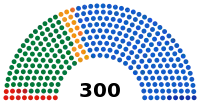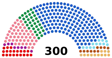 Le Parlement est composée de 300 sièges pourvus tous les quatre ans selon un mode de scrutin principalement proportionnel auquel s'adjoint une prime majoritaire. 250 députés sont ainsi élus au scrutin proportionnel plurinominal avec listes ouvertes et seuil électoral de 3 % dans 59 circonscriptions électorales. L'une d'entre elles, représentant douze sièges, couvre l'ensemble du pays, tandis que les autres le découpe à raison de 1 à 18 sièges par circonscription, en fonction de leurs populations. Parmi celle ci, sept ne comportent ainsi qu'un seul siège. Le mode de scrutin dans ces dernières y est par conséquent de facto uninominal majoritaire à un tour. Enfin, la liste arrivée en tête au niveau national se voit attribuer une prime correspondant aux 50 sièges restants[1].