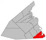 La queue de poêle du nord-est est limitrophe du Grand-Saint-Antoine à l'ouest, de Wellington au nord et de Cocagne à l'est. Celle au sud-est est limitrophe de Cocagne et de Grande-Digue au nord ainsi que de Pont-de-Shédiac–Rivière-Shédiac au sud.