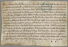 Octroi de 1203 cédant le domaine de la Par-deu.