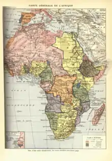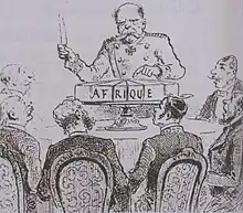 Le partage de l'Afrique[notes 1] désigne le processus de compétition territoriale entre les puissances européennes en Afrique, partie du mouvement général de colonisation de la fin du XIXe siècle (principalement entre 1880 et la Première Guerre mondiale). Les deux principaux pays européens concernés étaient la France et le Royaume-Uni. L'Allemagne, l'Italie, le Portugal, la Belgique et l'Espagne y ont aussi participé de manière significative, mais de façon moins importante et souvent plus tardive ; d'autres nations européennes également mais de manière marginale.