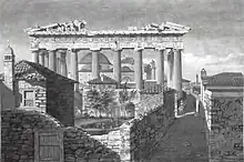 La fonction et l'histoire du bâtiment se sont perdues. Le « guide » écrit pour Mehmet II, daté de 1458-1460, appelle le Parthénon « l'église de la Mère de Dieu » et précise qu'il avait été à l'origine un temple dédié au dieu inconnu, construit par Apollon et un dénommé Eulogios. Des sources du XVIe siècle en parlent comme du « Panthéon » ou comme dédié encore au dieu inconnu[56]. Evliya Çelebi dans la première moitié du XVIIe siècle décrit le Parthénon en détail et avec exactitude. Cependant, il considère que c'était là que Platon enseignait (on montrait même alors son trône) et ne mentionne pas du tout que le bâtiment avait été une église. Il ne donne pas non plus de nom spécifique à la mosquée qui y était installée. Dans les documents de l'époque, elle est d'ailleurs juste appelée « mosquée d'Athènes », « mosquée du château d'Athènes » ou « grande mosquée »[57]. De nombreux visiteurs du XVIIe siècle ont témoigné du bon état de conservation du bâtiment. Contrairement à la réputation que leur firent les Européens plus tard, les Ottomans étaient généralement respectueux des monuments anciens qui se trouvaient sur leur territoire.
