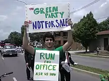 Photographie d'un militant du Parti Vert de l'Illinois.