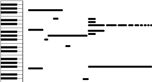 - Des notations de type piano roll, empruntées aux systèmes de notation utilisés dans les années 1905 et 1960 par les pianos mécaniques ; cette notation est à présent courante dans les séquenceurs MIDI utilisés dans la création musicale assistée par ordinateur.