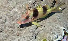 Parupeneus crassilabris, le Barbet à deux bandes[1] ou le Rouget barbet lèvres épaisses [2],[3] est une espèce de poisson perciforme de la famille des mullidés.