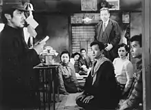 De g. à d. : Rentarō Mikuni, Akiko Tamura, Nobuo Nakamura, Eijirō Yanagi, Rieko Sumi (ja) et Keiji Sada.
