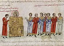 L'empire Byzantin est lui traversé par une succession de crises politiques et religieuses. L'arrivée au pouvoir de l'Impératrice Irène puis de Nicéphore Ier traduit par un affaiblissement qui perdure jusque 815[10] : incursion arabes sous la direction du calife Hâroun ar-Rachid, offensives victorieuses du khan bulgare Kroum... Un coup d'État porte au pouvoir Léon V en 813, qui rétablit quelque peu la situation en signant notamment une trêve durable avec les Bulgares[11]. Sur un plan religieux, son règne ouvre à un rétablissement de l'iconoclasme, en opposition avec le patriarche Nicéphore et l'influent Théodore le Studite qui doivent s'exiler[12].
