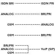 - Pour convertir les lignes RNIS et analogiques entrantes en VoIP : dans ce cas, la passerelle permet de passer et de recevoir des appels vers des abonnés du réseau téléphonique commuté.