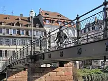 Connue sous le nom de « Tränkgässelbrücke » d'abord en 1905, puis en 1940, elle prend son nom français en 1927 et le recouvre à la Libération[1].