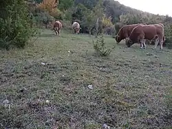 - L’absence de l’entretien assuré par les troupeaux entraîne une fragilisation du milieu : réduction de la diversité végétale et animale (et non l’inverse comme on le suppose à tort en constatant un retour à l’état sauvage d’un paysage), car les espèces vivant dans un milieu ouvert disparaissent[10][réf. nécessaire].