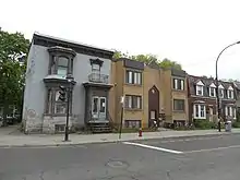 Particulièrement typiques, les maisons en rangée font leur apparition vers les années 1860 dans le but d'héberger les familles d'ouvriers affectés aux grand travaux. D'apparence identique, elles se succèdent, séparées par un mur coupe-feu intérieur. D'abord à toit à pignon mansardé, elles intègrent le toit plat à partir de 1885, surtout par souci d'économie. Ces toits sont recouverts de papier goudronné qui vient de faire son apparition et sont légèrement inclinés pour permettre l'écoulement de l'eau par un conduit intérieur. Elles sont à deux ou trois étages, dotés alors d'un escalier extérieur.