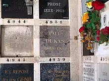 - Mairie du 16e arrondissement, « Acte de décès n° 1031 du 18/05/1935 photo 14/31 16D 150 », sur Archives de Paris (consulté le ) : « décédé le 17/05/1935 à 23h45, Paul Abraham Dukas, compositeur de musique, Officier de la Légion d'honneur, né à Paris le 01/10/1865, fils de Jules Jacob Dukas et Eugénie Gompertz, époux de Mazulée Suzanne Dinah Pereyra »