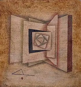 Mais, depuis 1922, les conflits se sont multipliés entre les dirigeants du Bauhaus, notamment entre Johannes Itten et Gropius[37]. Ce qui n'empêche pas Klee de continuer à produire, à exposer et à enseigner. Il publie entre autres « L'Étude de la nature », dans le recueil Le Bauhaus de Weimar[39].