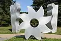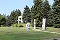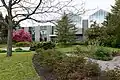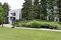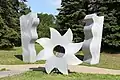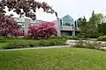 À l'extérieur du côté sud du pavillon, une sculpture d'Hélène Rochette — Carrefour — composée de trois éléments est située de part et d'autre d'une intersection formée par un trottoir et un sentier.