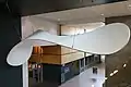 Une sculpture d'Hélène Rochette — Équilibre — est suspendue au-dessus de l'escalier nord dans le corridor intérieur.