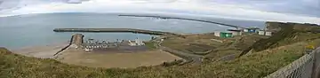 Le littoral est constitué de falaises de craie plus ou moins hautes dont les plus célèbres sont celles d’Étretat. Leur couleur blanche explique la désignation « Côte d'Albâtre » pour cette partie de la Normandie. Cette falaise recule plus ou moins rapidement en fonction de l’érosion marine, ainsi le littoral de la Seine-Maritime recule de vingt centimètres par an en moyenne[36]. Les plages sont tapissées de galets, détachés de la falaise et polis par la mer. Ces galets ont néanmoins tendance à migrer et le sable peut affleurer à certains endroits.