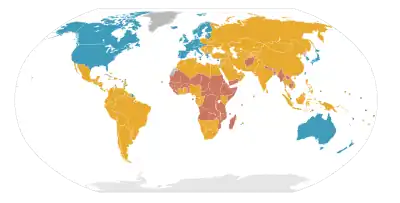 Dans l'édition 2016 de ses indicateurs de développement, la Banque mondiale a pour la première fois renoncé à distinguer « pays en développement » et « pays développés », une catégorisation devenue obsolète selon l'institution[2]. Mais ce n'est pas le cas pour le Programme des Nations unies pour le développement (PNUD) dans son Rapport sur le développement humain publié chaque année.