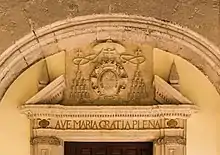 ses armoiries sur un fronton dans le monastère San Jeronimo à Grenade, Andalousie, Espagne.