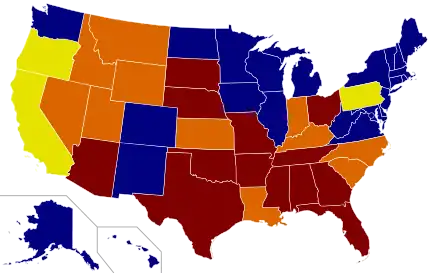Plus récemment, la peine capitale a été rétablie par référendum dans le Nebraska en 2016, après avoir été abolie par les députés de cet État l'année précédente[57]. De même, après un hiatus de onze ans, les exécutions ont repris dans l'Arkansas à partir du [58], avant que n'arrivent à péremption les stocks de midazolam, un anesthésiant permettant d'endormir les condamnés.