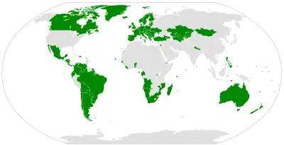 En 1983, le protocole numéro 6 de la Convention européenne des droits de l'homme interdit la peine de mort sauf en temps de guerre. Ce protocole a été signé par tous les membres du Conseil de l'Europe, sauf la Russie qui était membre de l'organisation de 1996 à son exclusion en 2022. En 2002, le protocole n° 13 à la Convention européenne des droits de l'homme l'interdit en toutes circonstances, y compris en temps de guerre, la majorité des membres l'a actuellement signé[52]. En 1989, le second protocole additionnel[53] du Pacte international relatif aux droits civils et politiques (ONU) abolit la peine de mort dans les états qui y adhèrent. Le pacte international dans son article 6 limitait déjà le recours à la peine de mort en 1966. Le second protocole permet l'application de la peine de mort en temps de guerre mais il est le premier texte non régional à viser une abolition (même limitée) mais explicite.