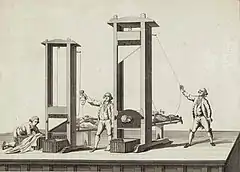 Le premier débat officiel sur la peine de mort en France (et le tout premier débat parlementaire au monde sur la question[3]) date du , avec la présentation d'un projet de loi visant à l'abolir. Son rapporteur, Louis-Michel Lepeletier de Saint-Fargeau, est soutenu notamment par Maximilien de Robespierre. Cependant, l'Assemblée nationale constituante, promulgue une loi le maintenant la peine de mort en supprimant la torture préalable[4]. C'est également avec cette loi qu'est uniformisée la méthode d'exécution, le privilège d'être décapité qui était réservé à la noblesse est démocratisé. Selon l'article 3 du Code pénal de 1791, qui classe la peine de mort parmi les peines afflictives et infamantes, « Tout condamné [à mort] aura la tête tranchée ». Cette célèbre phrase restera dans l’article 12 du Code pénal français jusqu'à l'abolition, en 1981[5].