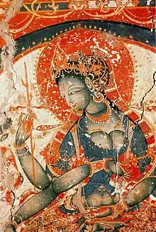 Les plus anciennes connues sont dans les grottes de Mogao, à Dunhuang, province du Gansu, en Chine. Ces grottes étaient, à l'époque de la création de ces peintures murales, situées dans les colonies de l'Empire tibétain (629 – 877). Elles sont situées aux côtés de peintures murales du bouddhisme han (chinois : 汉传佛教) plus anciennes, et souvent d'influence gréco-bouddhique.[réf. nécessaire]