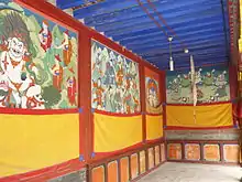 Des peintures murales du bouddhisme tibétain se retrouvent dans la plupart des monastères et temples bouddhistes tibétains dans les Himalaya. Malgré de nombreuses destructions au Tibet lui-même, beaucoup d'entre eux survivent, le climat sec du plateau tibétain aidant à leur survie, alors que le climat humide indien a réduit la survie des peintures en Inde. Il y a quelques différences régionales, mais les techniques décrites ici couvrent les peintures murales traditionnelles à travers cette région. Les peintures murales ont été exécutés sur le plâtre de terre avec la peinture a secco [1]. Une peinture a secco (italien) est une technique de peinture dans laquelle les pigments avec leur liant sont utilisés pour peindre sur une cloison sèche.