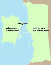 L'État de Penang est composé de deux parties séparées par le détroit de Pénang :