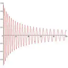 On reconnait l'équation circuit RLC avec self variable linéairement, c'est un problème classique (voir obtention de champs magnétiques intenses). On peut encore transformer cette équation.