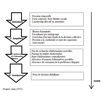 - En version originale : « A mode of thinking that people engage in when they are deeply involved in a cohesive in-group, when the members' strivings for unanimity override their motivation to realistically appraise alternative courses of action ».
