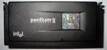 Contrairement aux processeurs Pentium et Pentium Pro précédents, l'unité centrale du Pentium II était logée dans un module à fente plutôt que dans un socle d'unité centrale. Le processeur et les composants associés se trouvaient sur une carte fille similaire à une carte d'extension classique, dans une cartouche en plastique. Un dissipateur thermique fixe ou amovible était placé sur un côté, parfois avec son propre ventilateur[3].