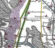 À l'époque de la Gaule préromaine, Perrigny est situé à l'extrême sud du territoire des Lingons, en limite de ceux des Séquanes et des Éduens. Positionné sur la frange occidentale de la plaine dijonnaise, il se trouve à proximité d’une antique voie de communication longeant l’axe nord-sud de la côte ainsi qu’au débouché d’une combe orientée est-ouest permettant l’accès au mont Afrique et à la vallée de l’Ouche (en direction du peuple des Mandubiens)[17]. Excepté les traces protohistoriques détectées par archéologie aérienne, on n’a cependant pas retrouvé de vestiges gaulois sur le site de Perrigny.
