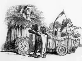 - Détail d'une gravure du XIXe siècle figurant le cortège de la descente de la Courtille.