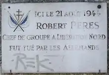 Plaque commémorative à Robert Pères, quai du Quatre septembre.
