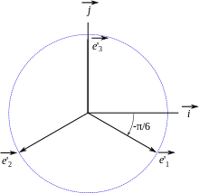 Soit . Appelons la base orthonormée directe dans le plan de projection. On choisit arbitrairement que fait un angle de -π/6 avec .
