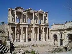 - D'après l'interprétation de Wendel et Göber 1961, renforcée en plus par le récit d'Aphthonius d'Antioche, qui l’a visitée à la fin du IVe siècle. Il a décrit les salles pleines de livres, libres d'accès à tous, et « toute la ville attirée pour intérioriser les sagesses » (Aphthonius, Progymnasmata 12).
